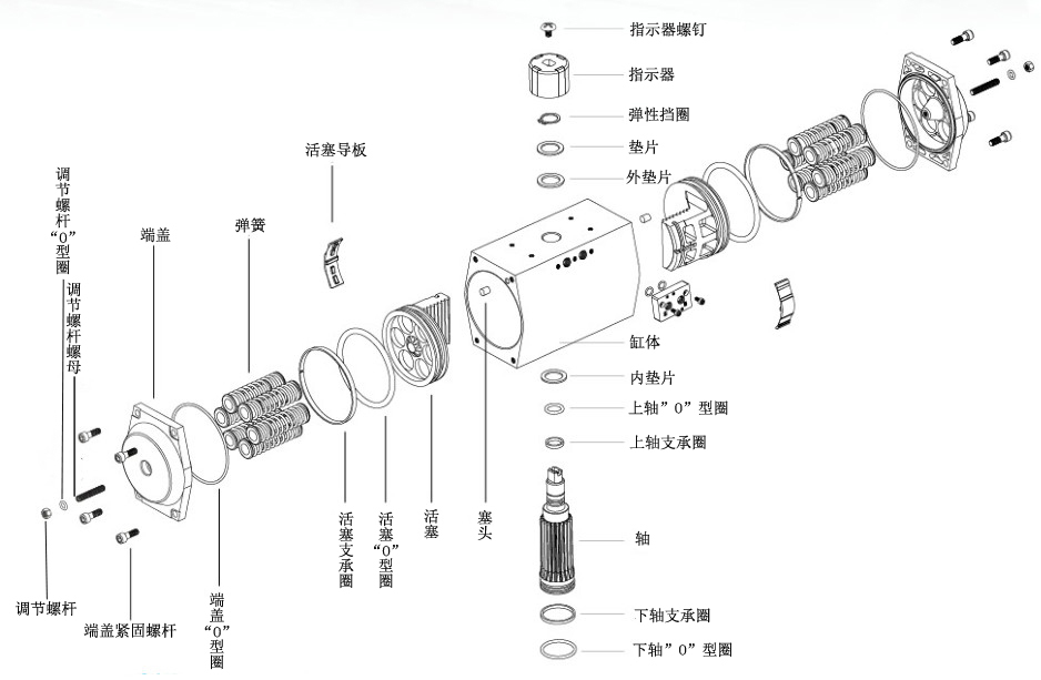 4、缸體、端蓋、輸出軸、彈簧、緊固件等均經防腐處理。